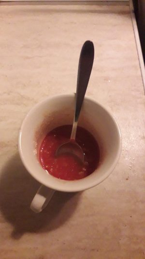 - se amestecă într-o cană cu puțină apă, oțet, sare, ulei și bulion.