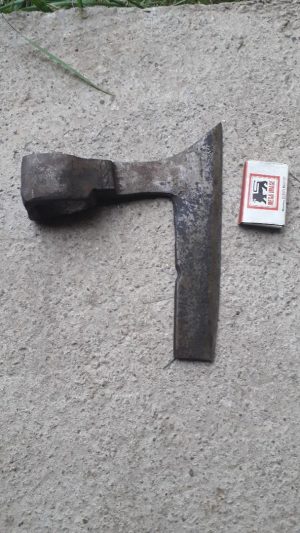 A fost găsit într-o curte, pe o cuşcă de câine. Cine ştie de când era pe acolo. Proprietarul ei, care murise cu puţin timp înainte de aflarea bardei, trăise undeva spre 90 de ani. Starea nu era prea bună. Este şi cam subţire în gură (tăișul). Efectiv mi-a părut rău să las un asemenea lucru să se irosească. Asemenea modele nu prea se mai fac. Am anunţat pe cel care avea grijă de imobilul respectiv că o iau şi de ce, şi chiar s-a bucurat când am auzit ce am de gând. Din păcate, nu mi-a trecut prin minte să fac fotografii la vremea respectivă.