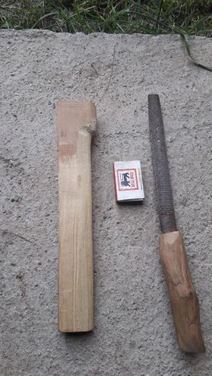 Coada a fost făcută din lemn de salcâm. Rămas de la o altă coadă care a fost pusă unei alte unelte. Procesul nu a fost complicat. Cioplit lemnul cu altă bardă. Cu un raşpel a fost adus la dimensiunile potrivite pentru fixarea capului de bardă. Coada a fost finisată cu şmirghel. Nu prea mult. La urma urmei, este o unealtă, nu participă la nici un concurs de frumusețe.