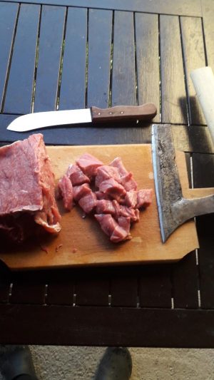 Din păcate, anii în care a fost neglijată şi-au spus cuvântul. În unele locuri rugina a muşcat destul de adânc. Fiindcă din construcţie pare să fi fost cam subţire de felul ei, nu prea am cum să mai remediez asta, să mai polizez din material. Aşa că o folosesc ca bardă de măcelar. Şi merge de minune.