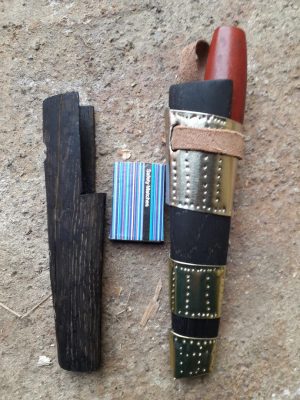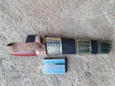 Pentru că teaca cuțitului meu nu reușea să-l țină bine înăuntru (am avut neplăcuta surpriză ca la o drumeție să sară din ea, de am fost nevoit să îl caut), am decis să-i fac eu una. Și am urmărit să fie ceva diferit, dar simplu, funcțional, fără brizbriz-uri. Astfel văd eu lucrurile, în ceea ce privește traiul în natură, în asta constă o astfel de înclinație, pasiune. Nicidecum în lucruri scumpe. Și așa am ajuns la o astfel de teacă, la un model siberian. Pentru facerea ei, m-am inspirat de aici și aici. Nu am urmărit să fie cât mai frumoasă, cât mai finisată, aranjată, ci să fie un lucru ce poate să îmi fie de folos.