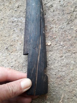 Dar lucrurile nu au mers tot timpul strună cu teaca. De exemplu, mai jos sunt, de fapt, două teci. La una a crăpat lemnul. Din vina mea.