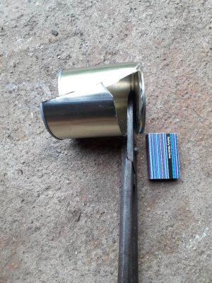Lemn de foc uscat (stejar), două cutii de conserve, o bucată de piele, oțet cu rugină (folosit la curățarea unor topoare).