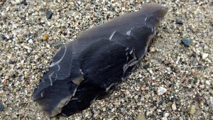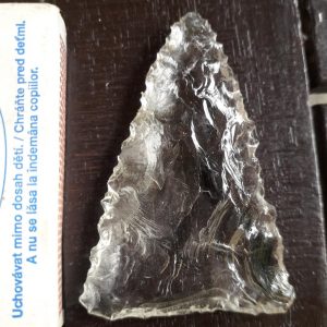 Oleacă mai la vale, în zilele noastre, un individ (adică io) s-a gândit să facă și el un vârf de suliță deși nu-i folosește la nimic. Din fericire nu este singurul, pe internet mai sunt o grămadă. Așa cum spuneam într-un alt articol, pentru că azi este comună sticla, iar piatra de cioplit este mai greu de obținut, și vârful de suliță e din sticlă.