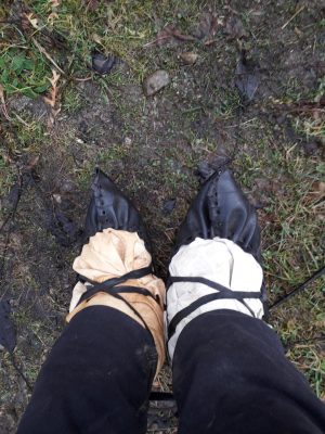 Încălțări căptuşite cu iarbă. Merită scris un articol despre un asemenea subiect? Sunt eficiente? Eu cred că da. De exemplu, în cele din imagini, la temperatura de 5 grade afară, simțeam cum transpiră picioarele. Apropiat de aşa ceva avea și Otzi. Încălţămintea lui era căptuşită cu iarbă, după cum se poate vedea aici. Pot afirma din acest punct de vedere că Otzi nu era deloc un om lipsit de minte. Nu știu cum mai e acum dar în copilărie omul preistoric avea o reputație nu tocmai bună. Era promovată imaginea unui om cu inteligență redusă, cu o piele de animal aruncată pe el, avînd o claie de păr în neorînduială și care trăia de pe o zi pe alta. Acum știm că nu e așa. De fapt, era un om ca noi. Unii afirmă că era chiar mai deștept. Avea abilitatea de a gândi pe termen lung, de a planifica, de a ține cont de ce oferă natura în funcţie de sezon, să improvizeze. O sursă care susține că omul preistoric nu era deloc unul cu o judecată puțină se poate vedea aici. Oamenii de știință susțin că nici măcar omul de neanderthal nu era o ființă umană cu o inteligență redusă. Se poate vedea aici. Era capabil inclusiv de artă (sursa aici) și de ornamente (sursa aici).