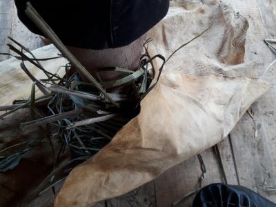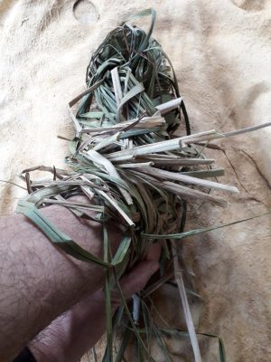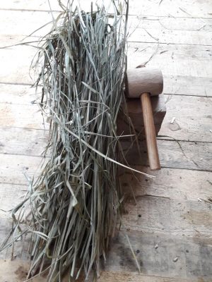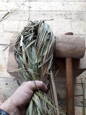 Odată uscate plantele nu pot fi folosite exact așa, în stadiul în care se află. Trebuie să fie aduse la o stare adecvată de moliciune. Altfel sunt prea aspre, deranjează pielea și nici nu pot fi înfășurate pe picior. Drept urmare rogozul a fost bătut pe un butuc cu ciocanul de lemn. Până a ajuns moale. Ulterior a putut fi folosit. Trebuie să mărturisesc că mai trebuia bătut rogozul, mergea să fie și mai moale. De acum înainte cam știu ce trebuie făcut.