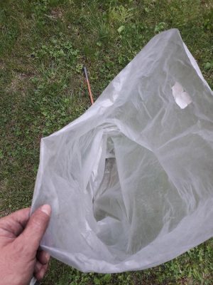 Realizată cu ce aveam prin curte. Din lucruri aruncate de alții. Țeavă de plastic rămasă de pe la construcții, sârme aruncate de cei care au tras curentul și bucăți de sfoară abandonate de cei care leagă reclamele prin oraș (chinga a rămas de la alte proiecte). Nu e nimic frumos la ea. Dar își face treaba excelent. Oricum, țelul meu este să mă descurc cu materialele ce le am, găsesc, fac, improvizez și nu cu cele cumpărate. Asta înțeleg eu prin viețuirea sub cerul liber.