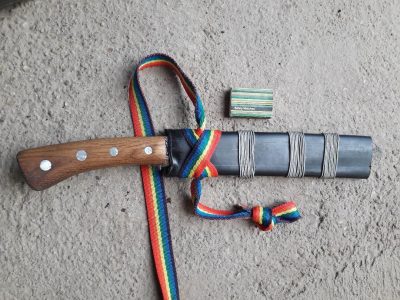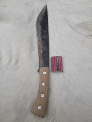 Alţii îi spun cuţit. Fiecare cum dorește. La confecționare, obiectele tăietoare avute ca sursă de inspirație au fost cele folosite de populația hmong (și ei au mai multe feluri). Mai multe despre populația menționată se află aici. Căutările pe internet au oferit puține informații despre acest fel de unealtă (lungime, lățime, grosime etc). Un loc unde se pot afla descrieri este aici. Cea mai mare parte a informațiilor le-am luat din locuri ca aici. În acest material se poate vedea și motivul, probabil, pentru care mânerul este așa de lung. Permite priza mai aproape de lamă când este necesară precizia și spre baza mânerului când se cere mai multă forță la tăierea unui obiect. Ori folosirea cu ambele mâini.